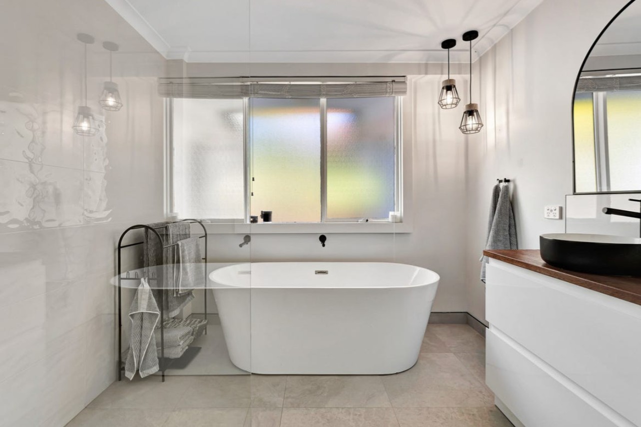 All three bedrooms feature built-in robes, and the stylish bathroom includes a freestanding bath, modern vanity, and separate shower.