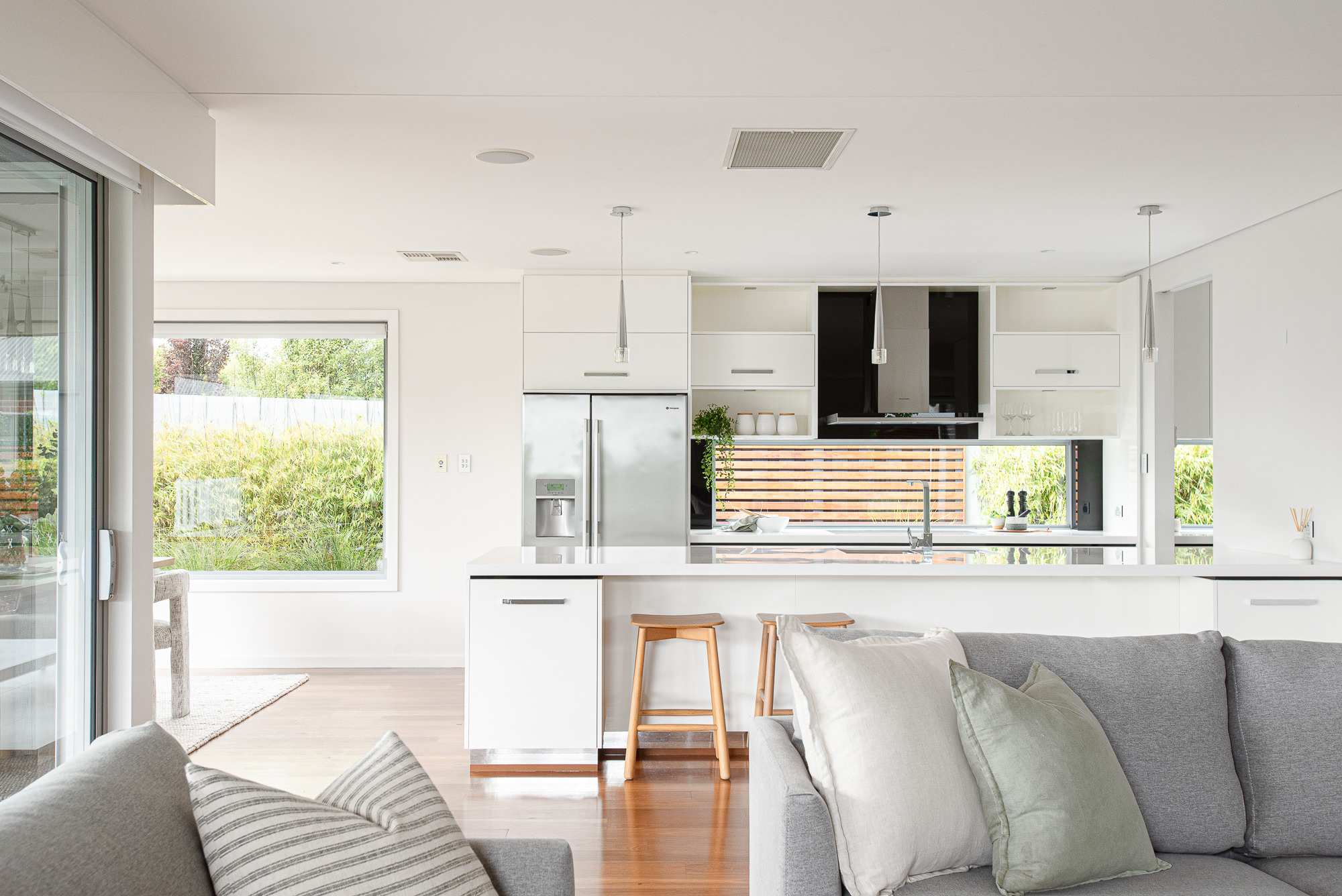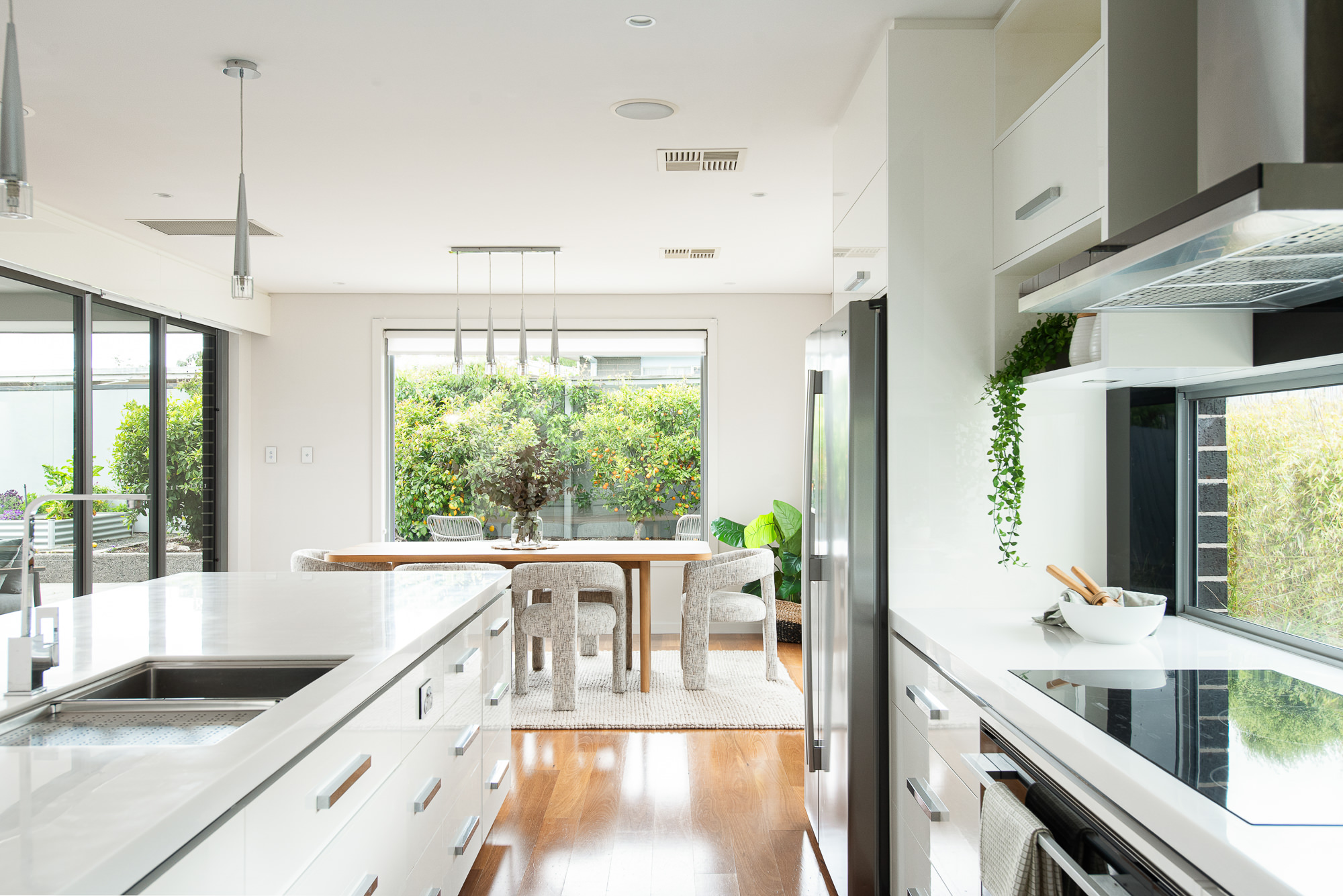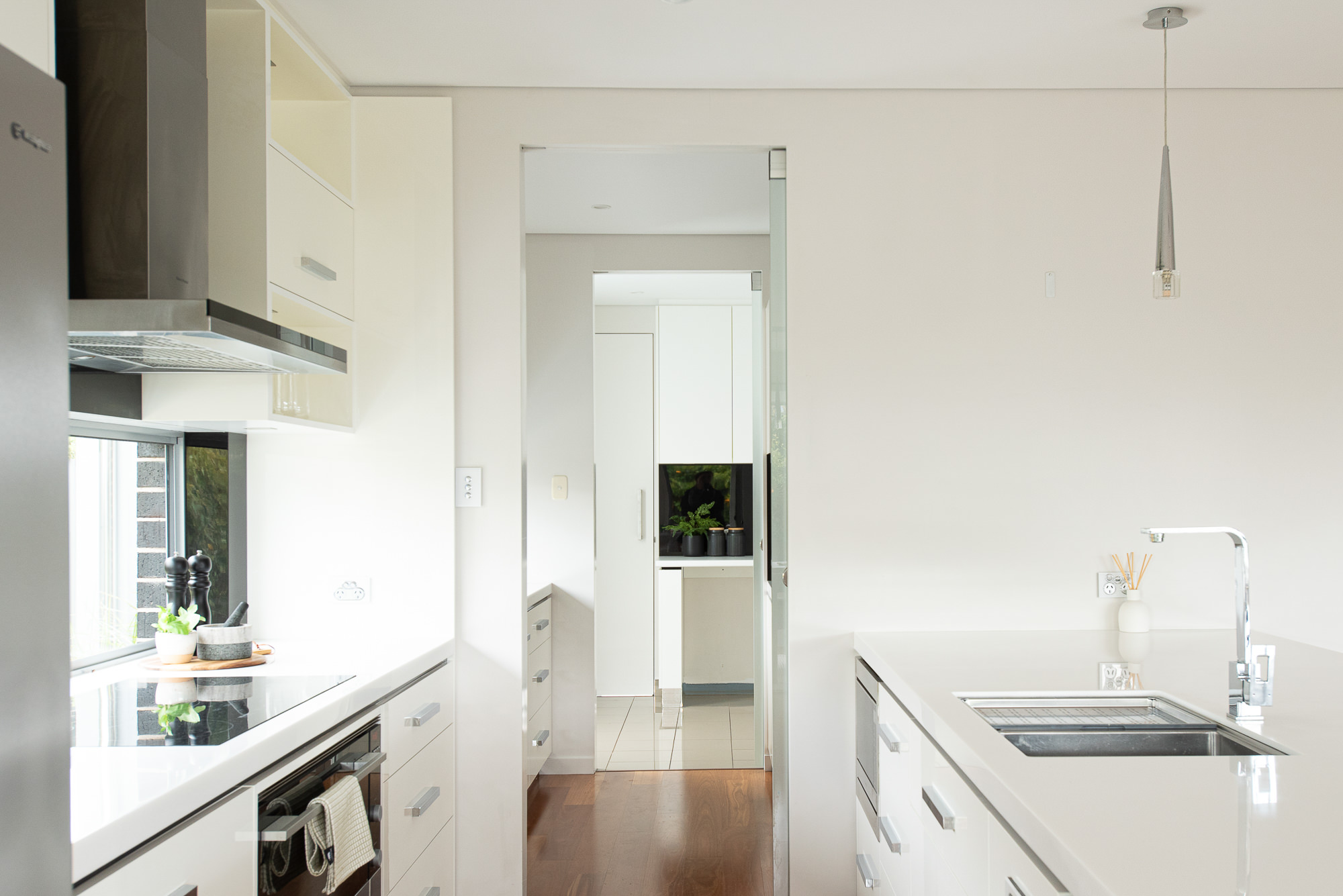 The galley-style kitchen transitions seamlessly into a true scullery, then through to the laundry and directly into the garage—cleverly connecting the hardworking zones of the home.