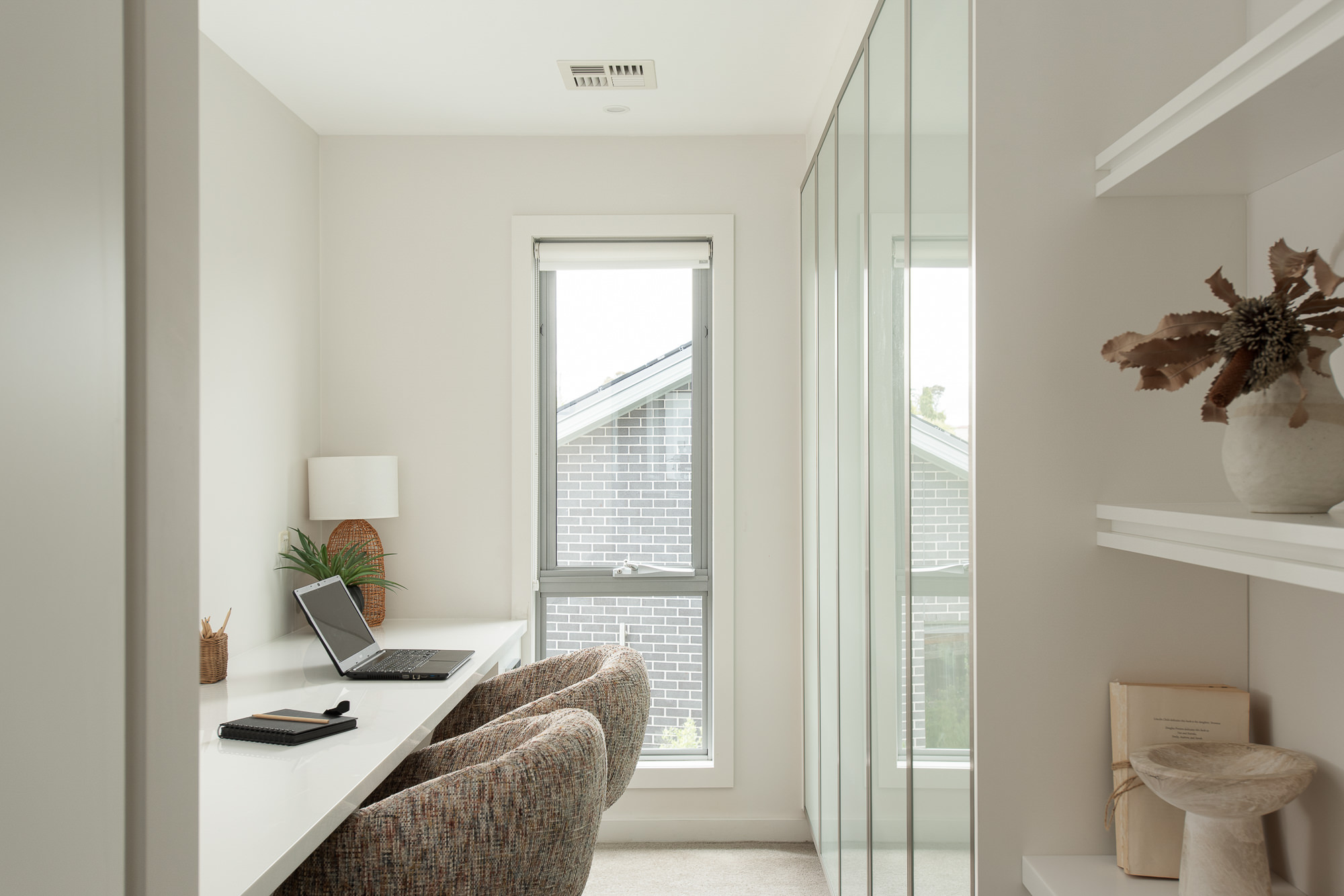 • Study with custom joinery for storage + desk