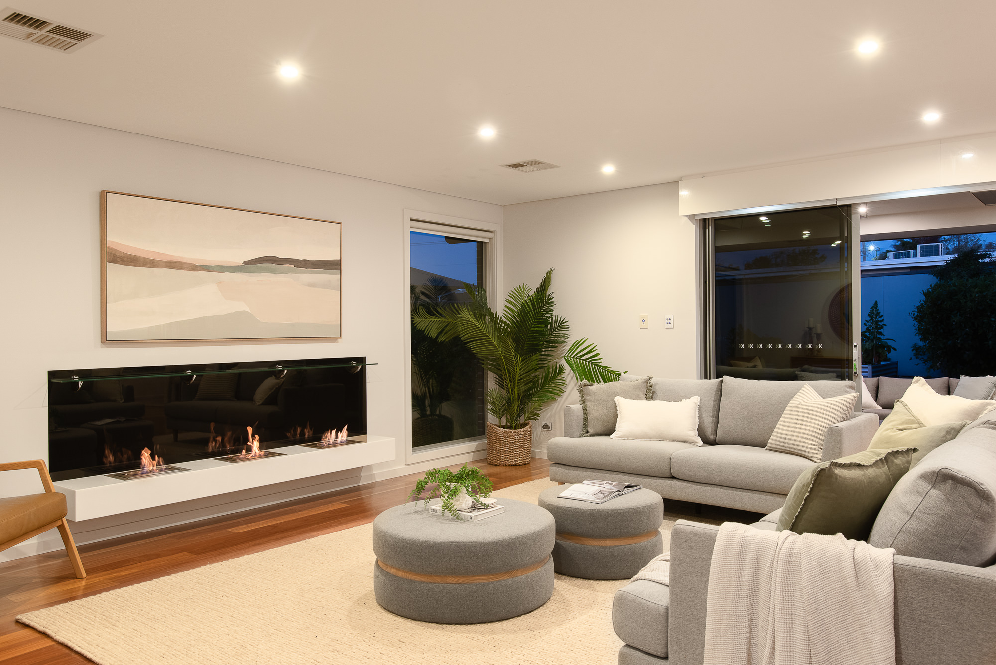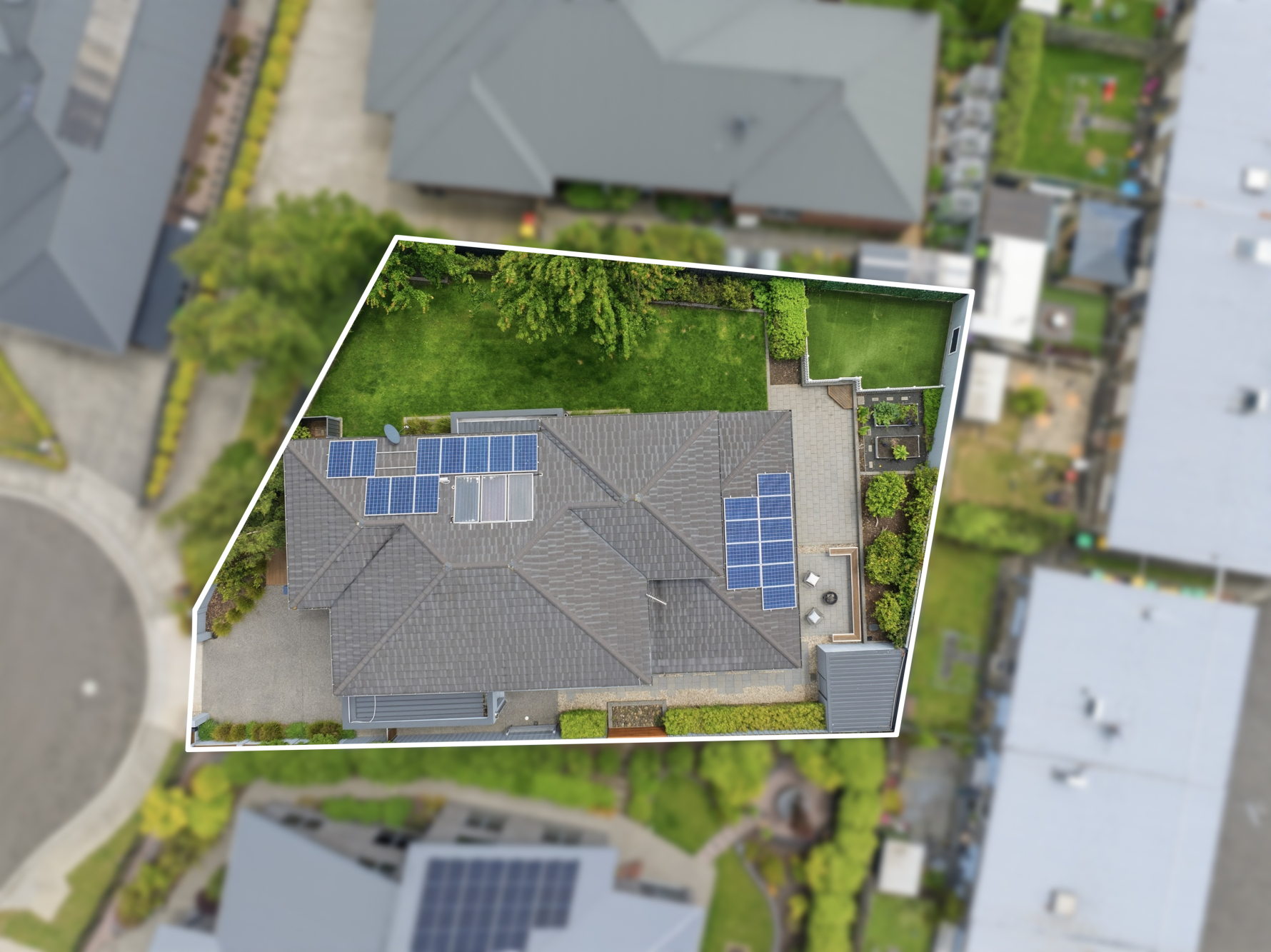 Outdoors, both covered and open dining and relaxation spaces sit peacefully amongst manicured gardens. Overhead radiant heaters allow you to enjoy these areas all year round, and there’s space available for vegetable gardening. Solar panels will also help to keep electricity bills down.
