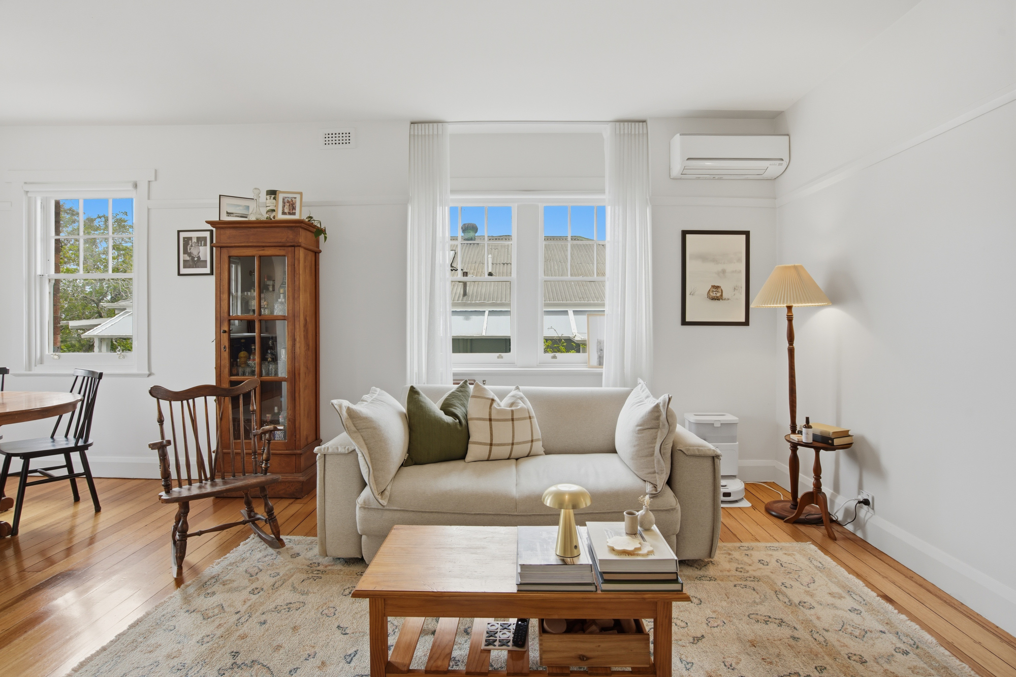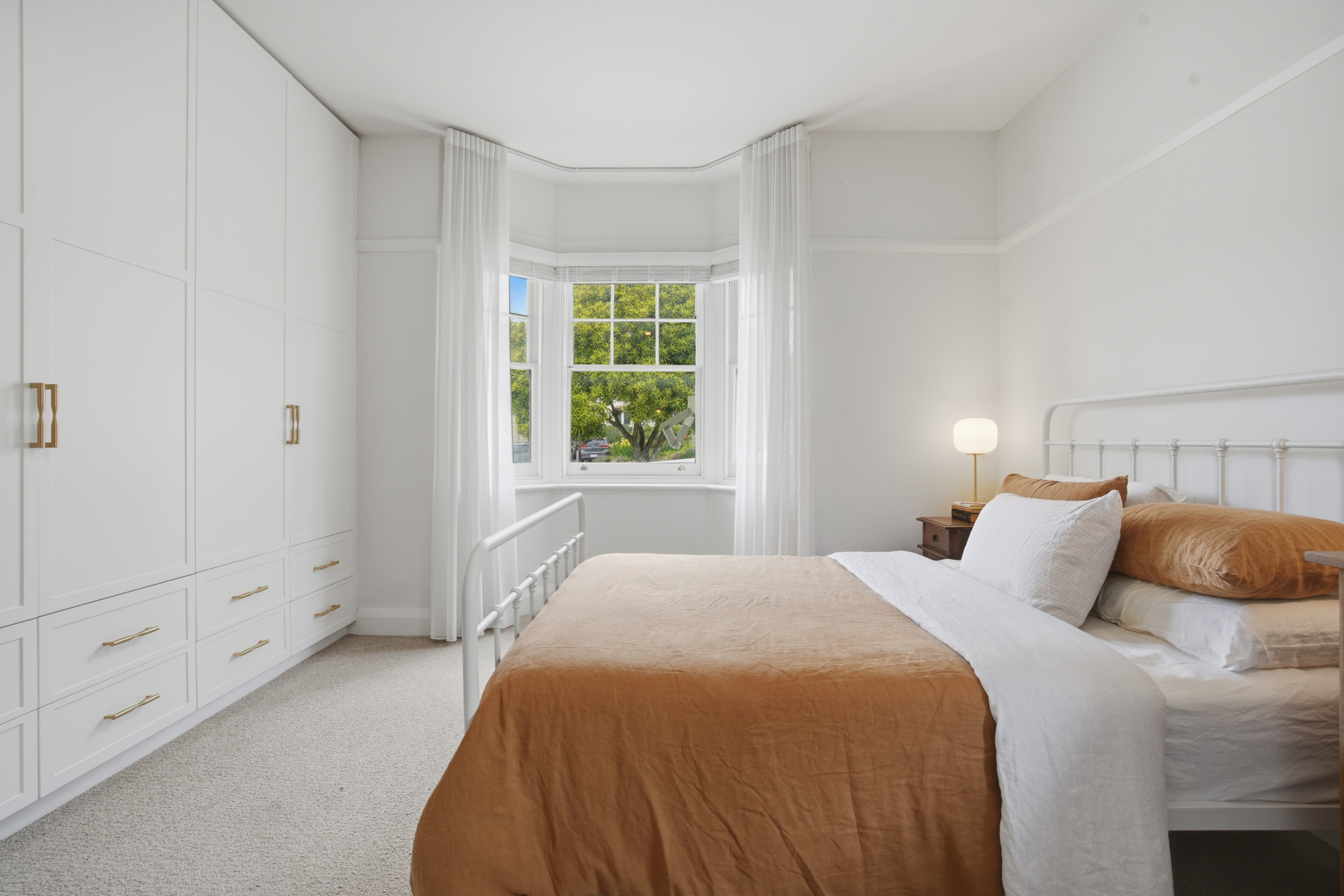The home offers two bedrooms, with the main bedroom giving you a fabulous wall of built-in wardrobes. The kitchen is dreamy - beautifully tiled, with European Smeg appliances, including the iconic Smeg retro fridge/freezer.