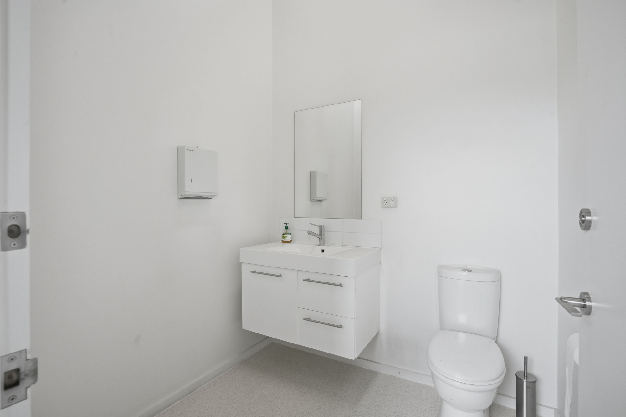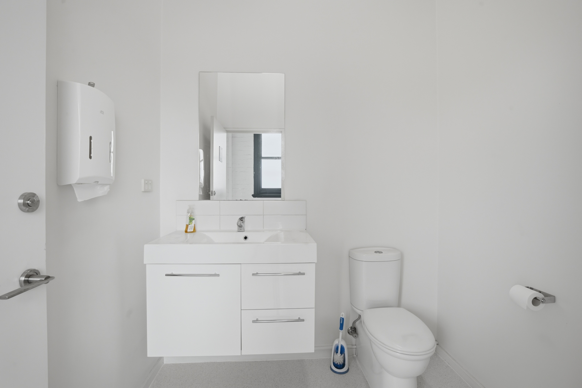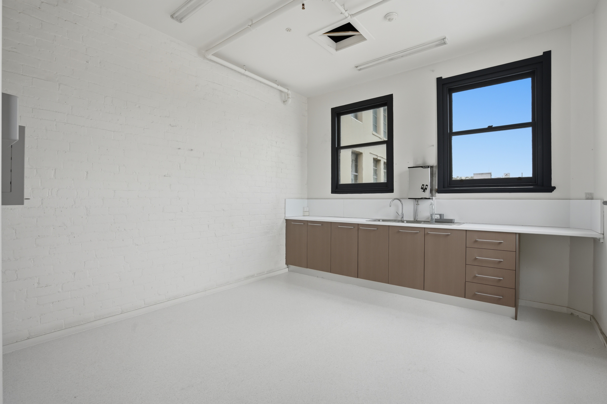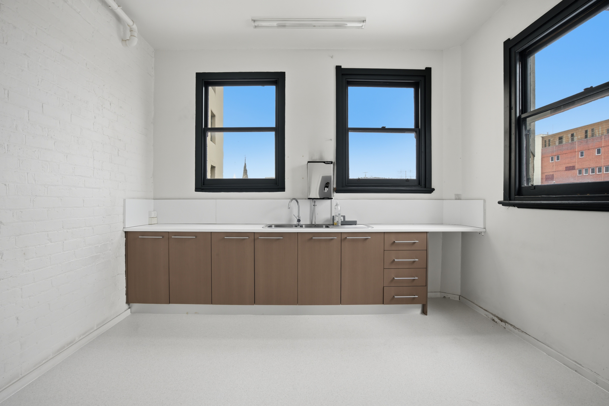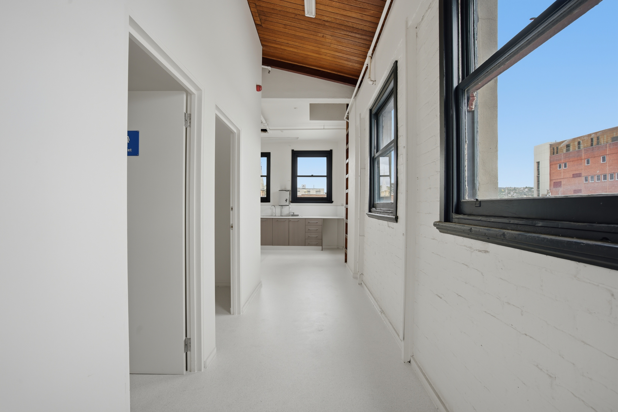 A large kitchen with room for a dining table provides a comfortable space for staff breaks, and there are 2 bathrooms for everyday convenience.
