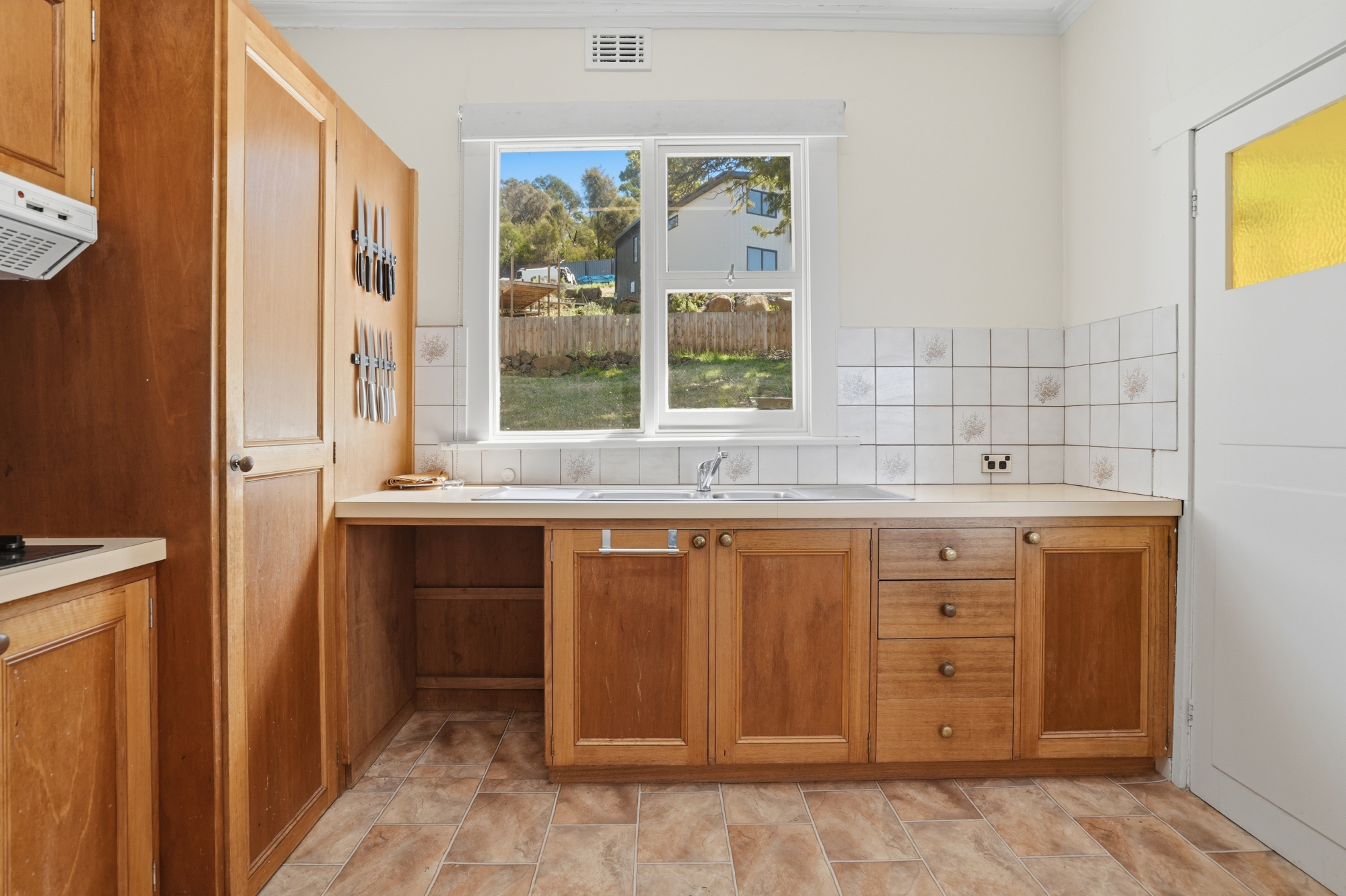 • Timber kitchen with backyard outlook
