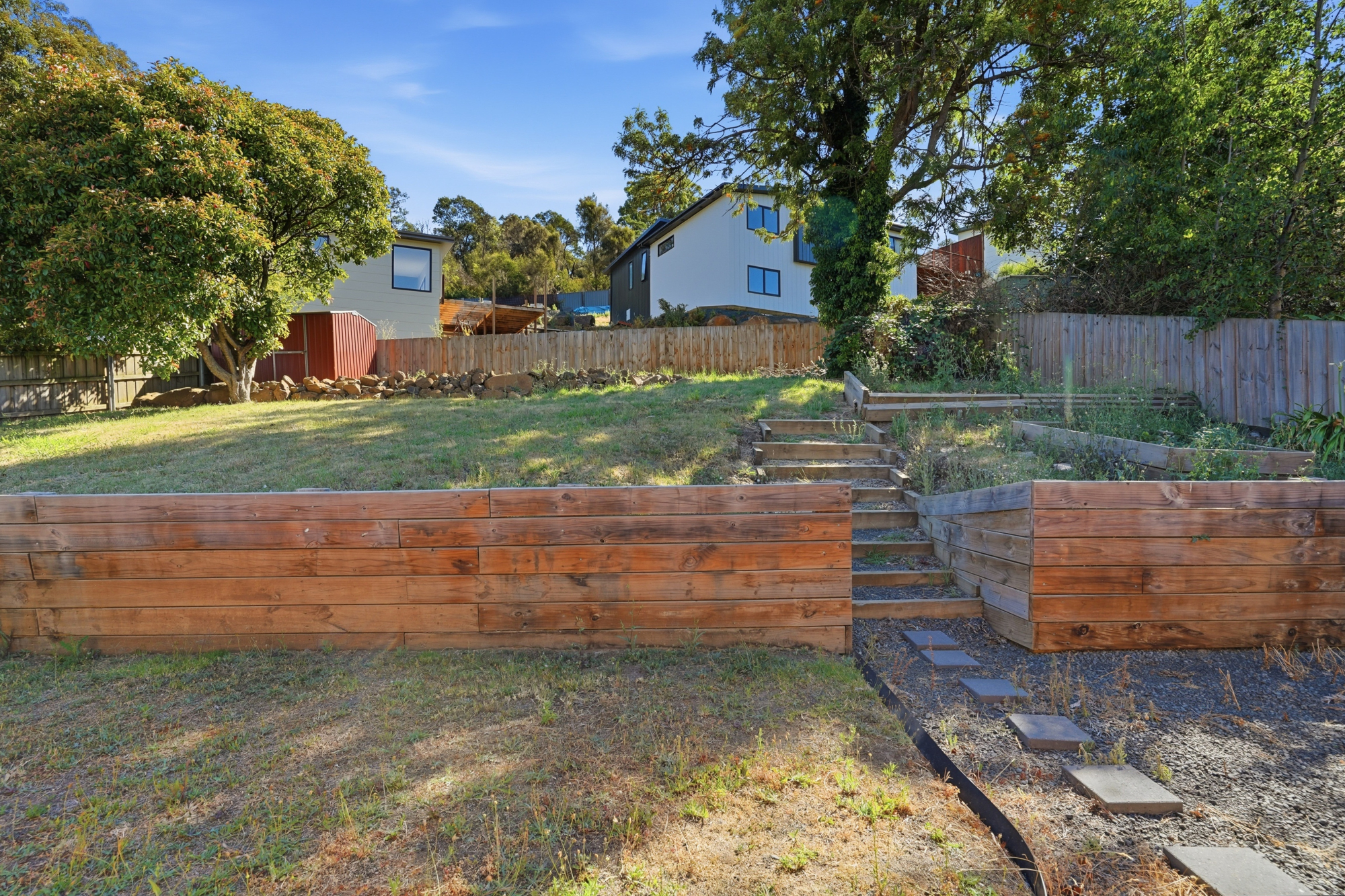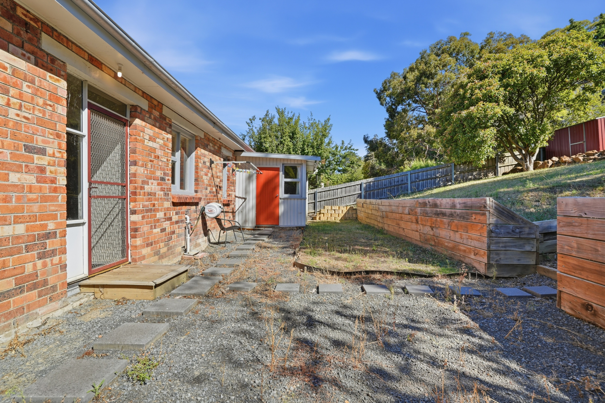 To the rear, the slightly elevated backyard enjoys a quiet bushland aspect and provides plenty of room for outdoor entertaining or play. A separate laundry adds convenience, and whilst the garage underneath is probably too small for a car, if you travel on 2 wheels, no dramas – offers great storage though! Off-street parking is available for 2 vehicles.