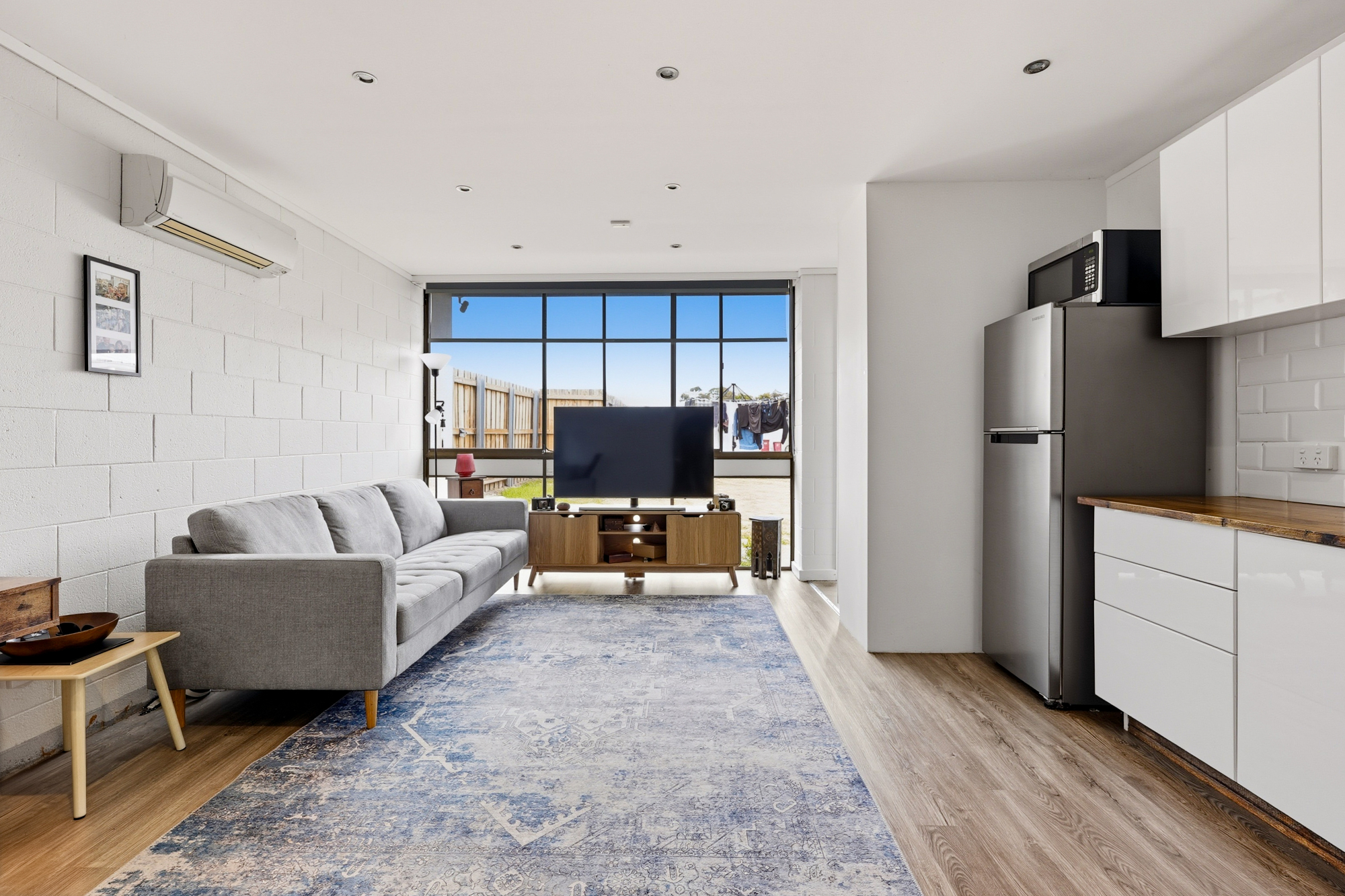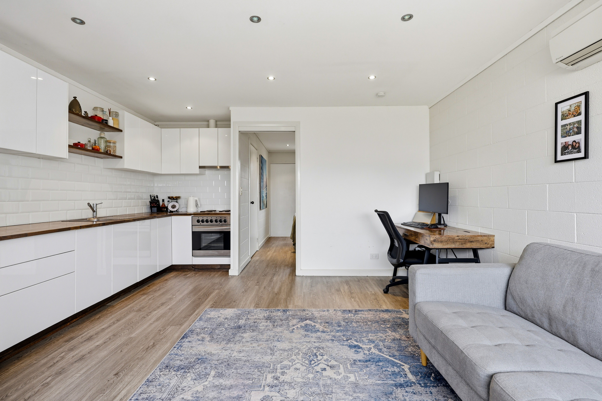 Inside, the open-plan living area feels welcoming and practical, with an updated kitchen and the comfort of a Daikin reverse-cycle heat pump to keep things cosy year-round.