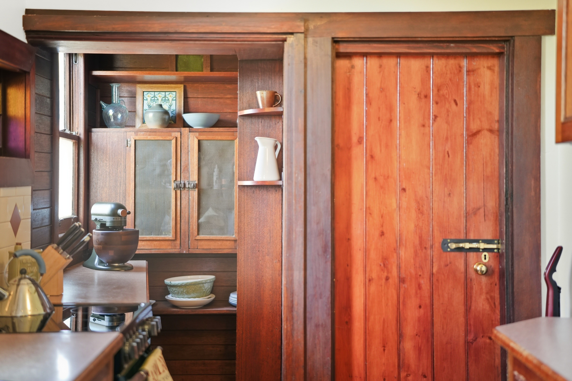 The adjoining kitchen has all the quirky attributes lovers of early homes appreciate.