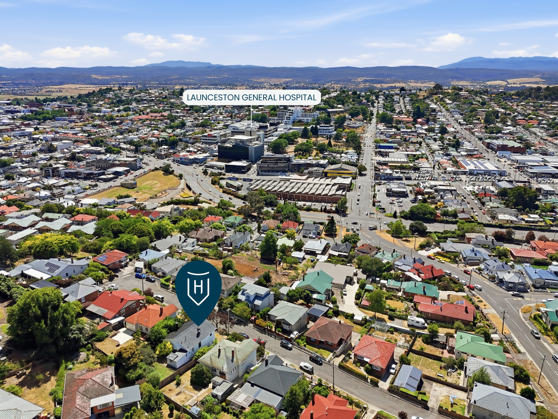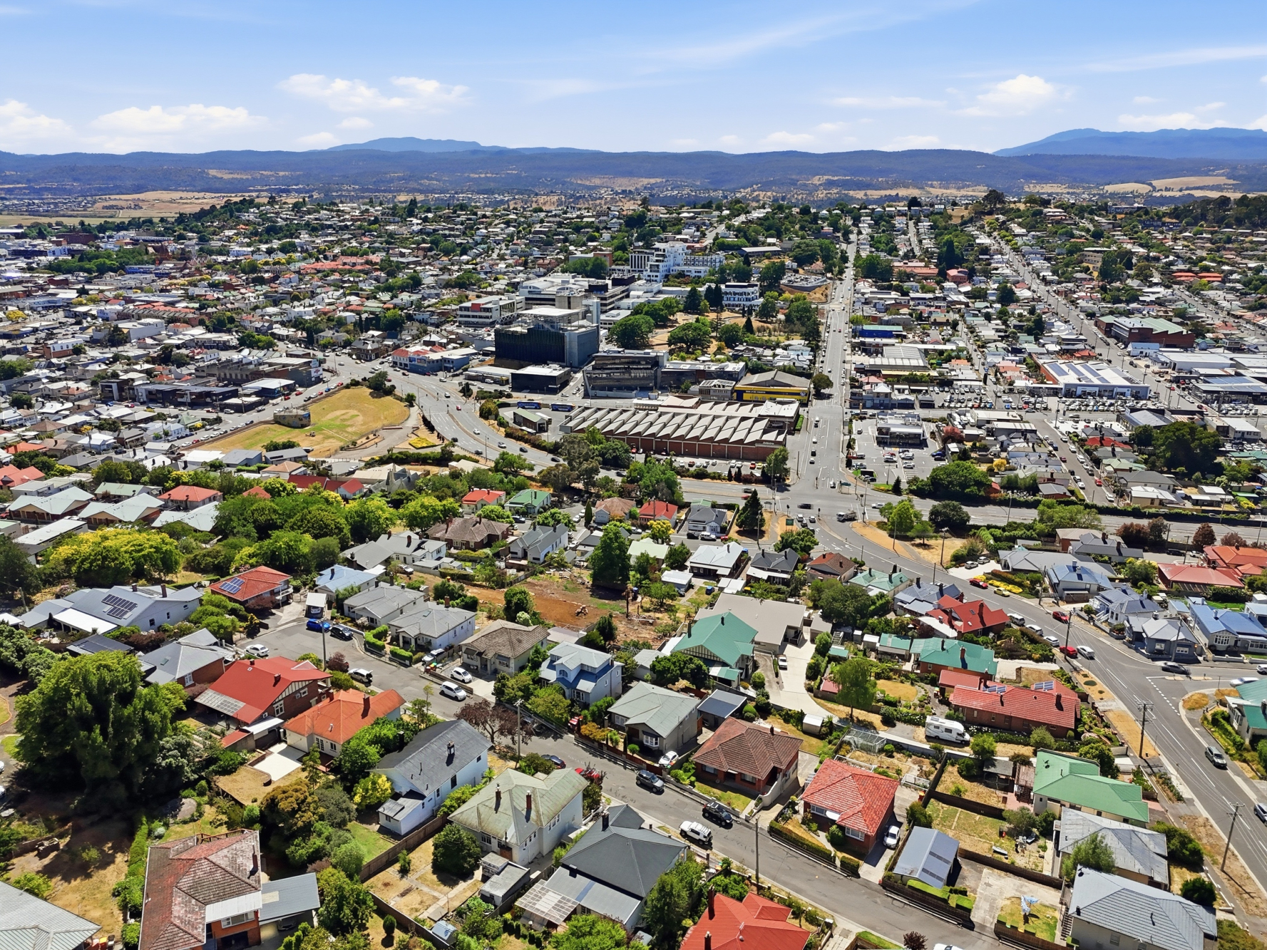At the heart of the home, the living zone is warm and inviting, centred around a freestanding wood that will be well used in the coming Launceston winter evening.