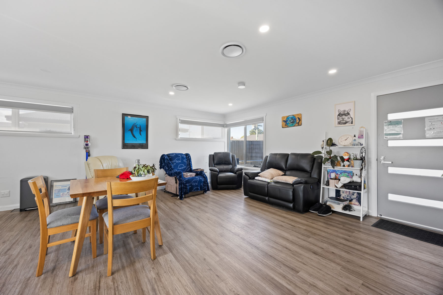 The unit includes open plan living with ducted heating and cooling, a stylish and practical kitchen, and light-filled living spaces that flow effortlessly outdoors. Wheelchair-friendly design elements include ramp access, wide doorways, level flooring, and a bathroom fitted with grab rails for added safety.