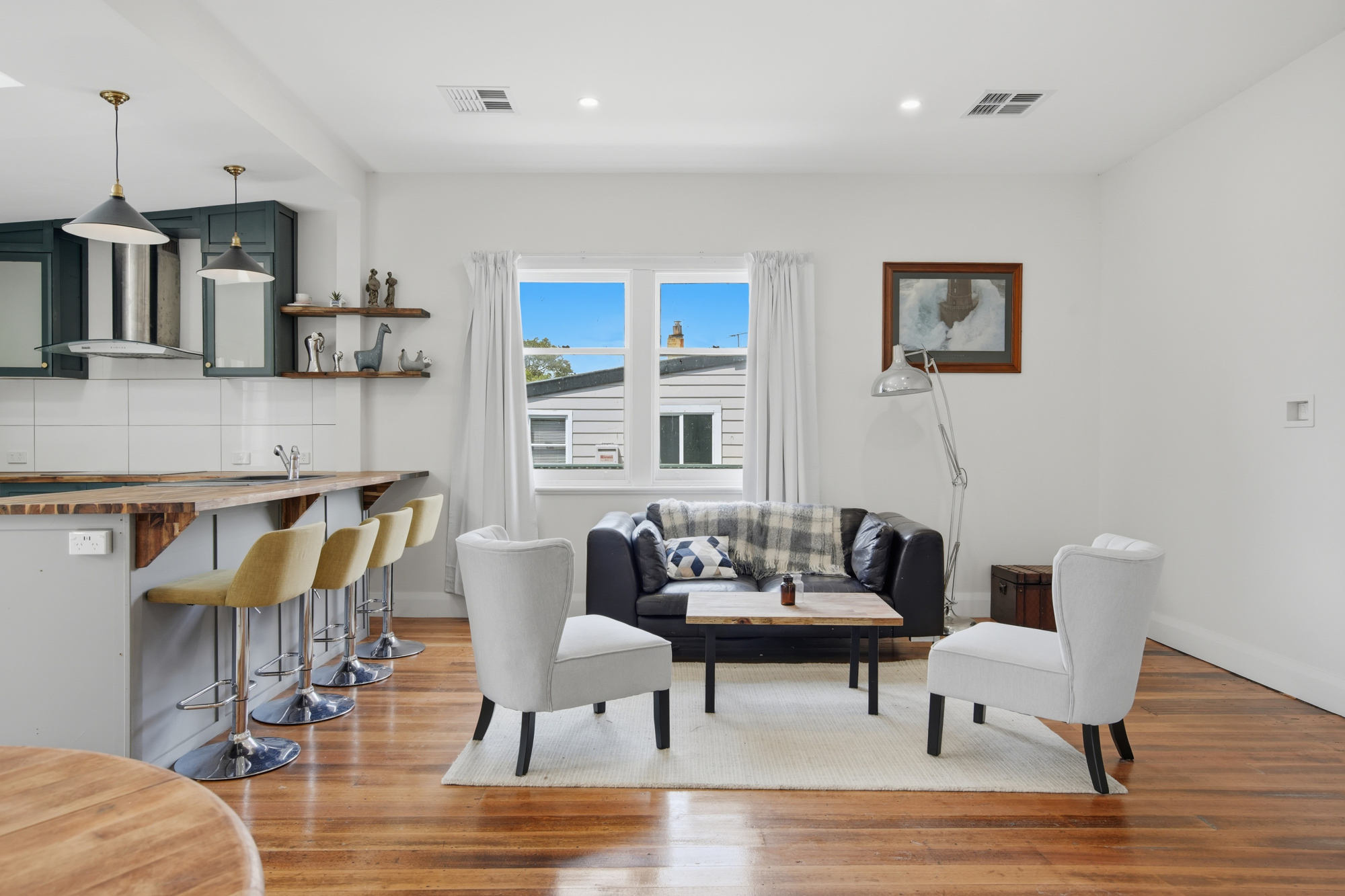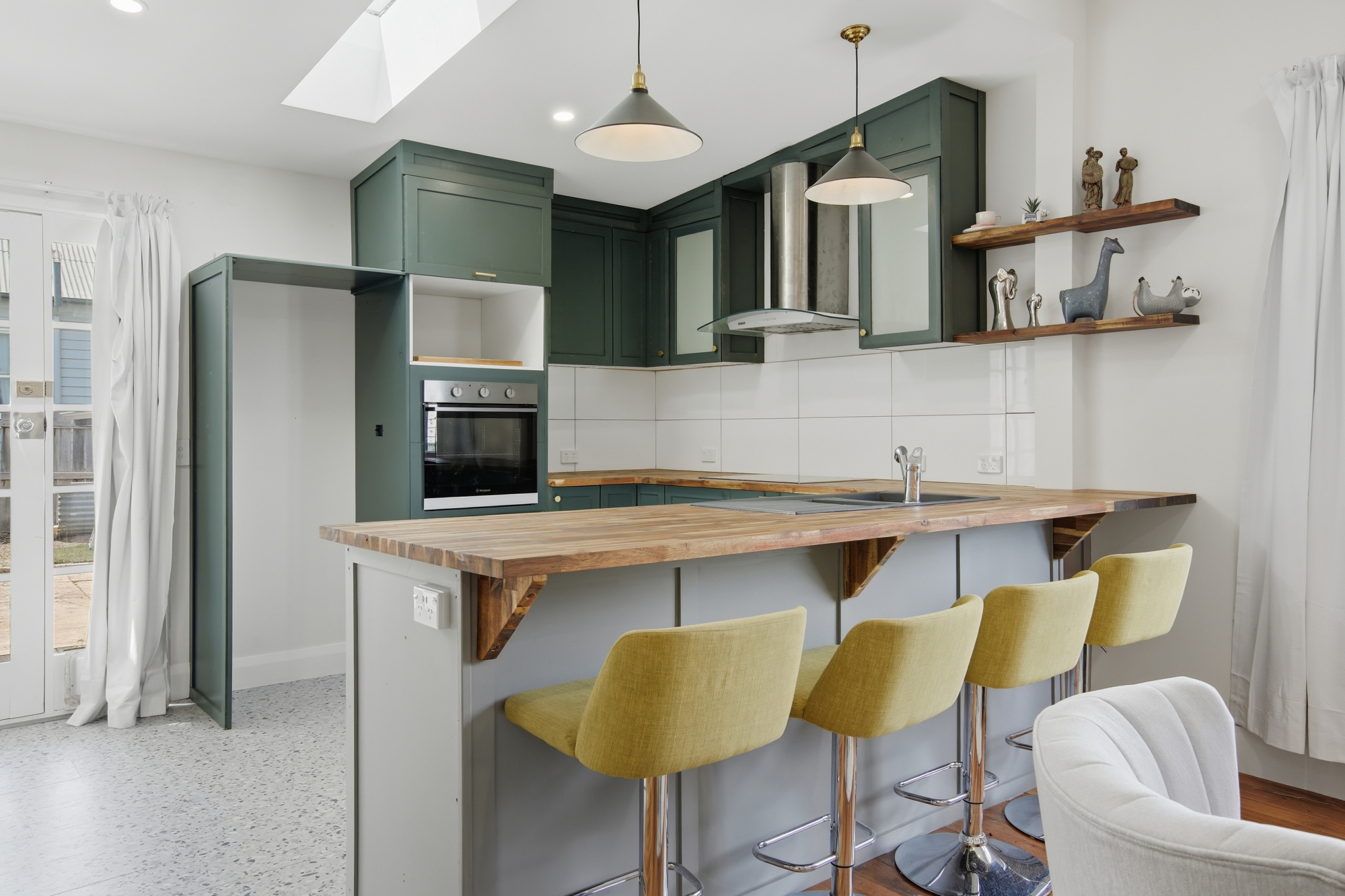 The kitchen has been fully modernised with generous cabinetry, a dishwasher, and an island bench that provides extra prep space and casual seating.