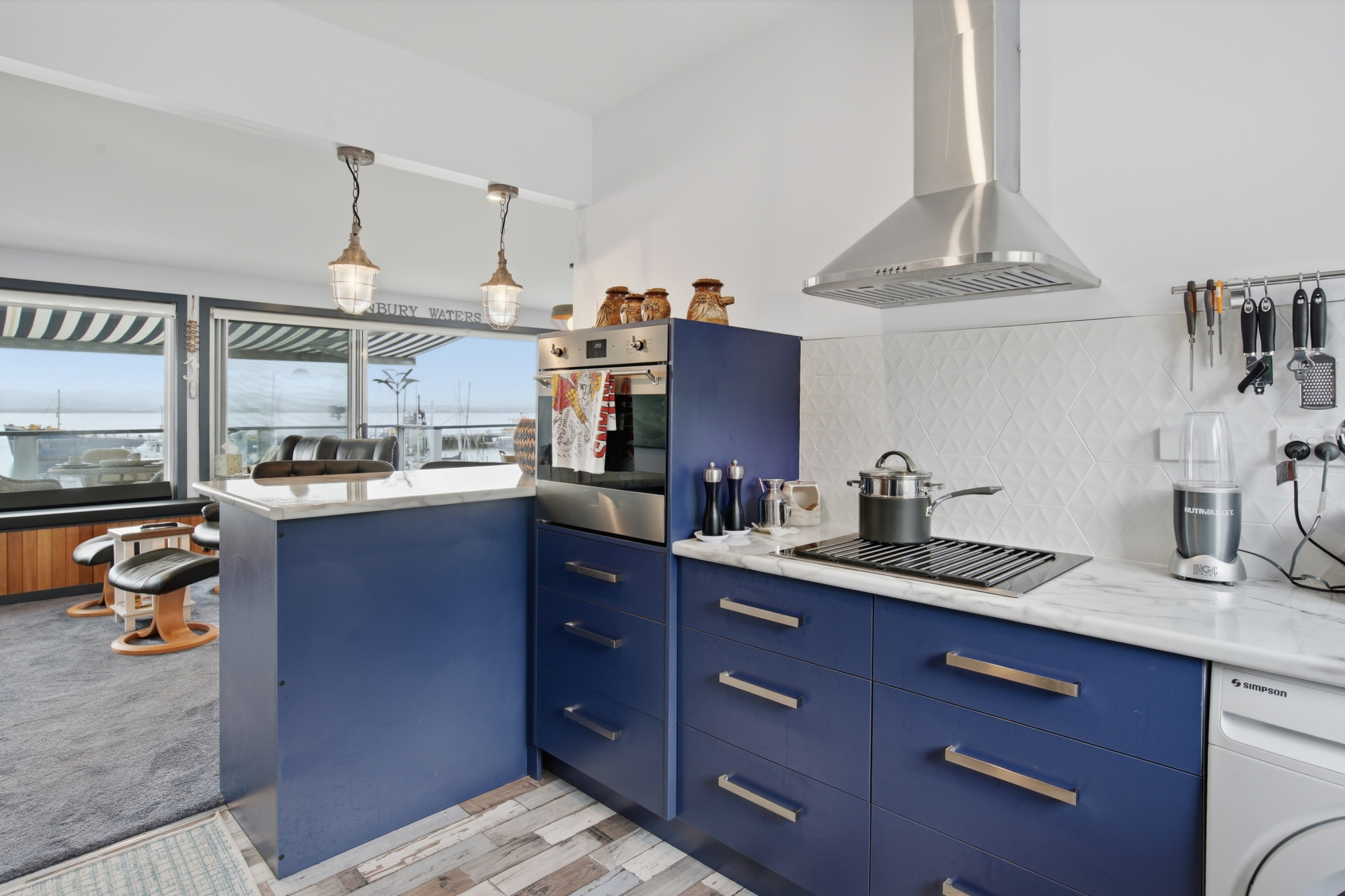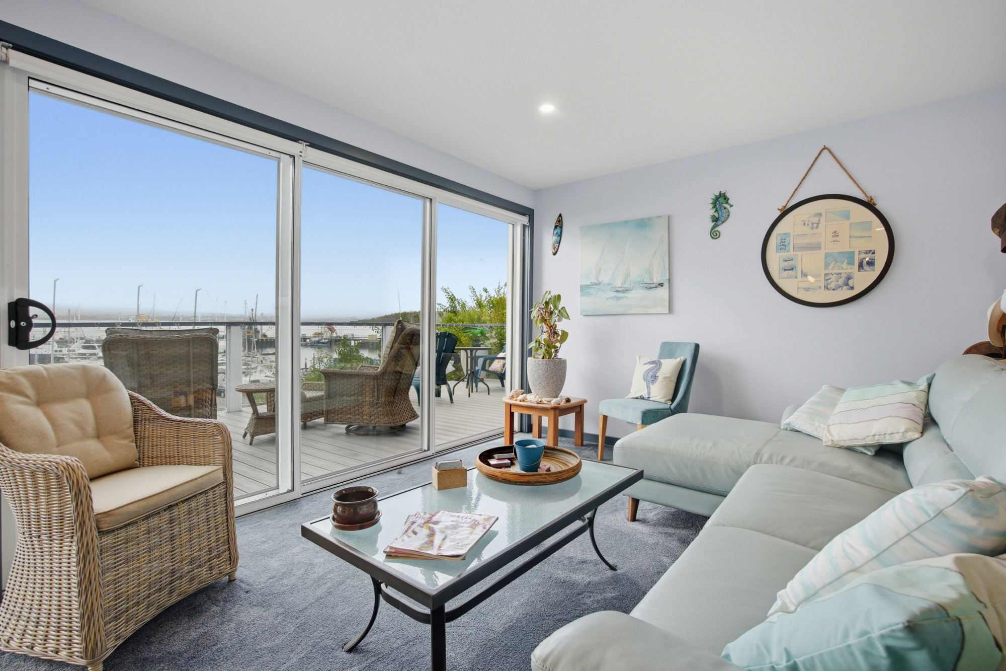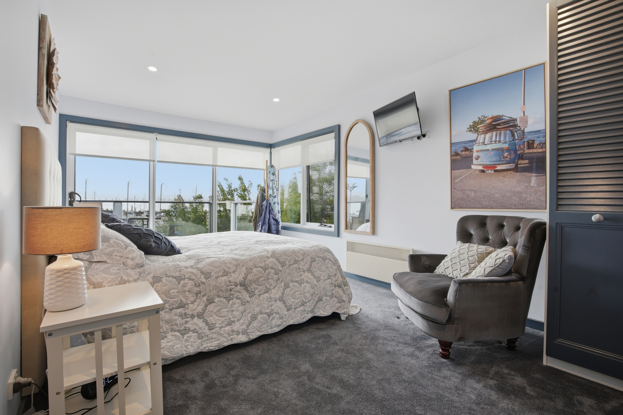 Step outside to a fantastic entertaining deck where you can BBQ in style and watch the boats sail by. The space is partially covered by an automatic awning, providing shade and flexibility for year-round outdoor enjoyment.