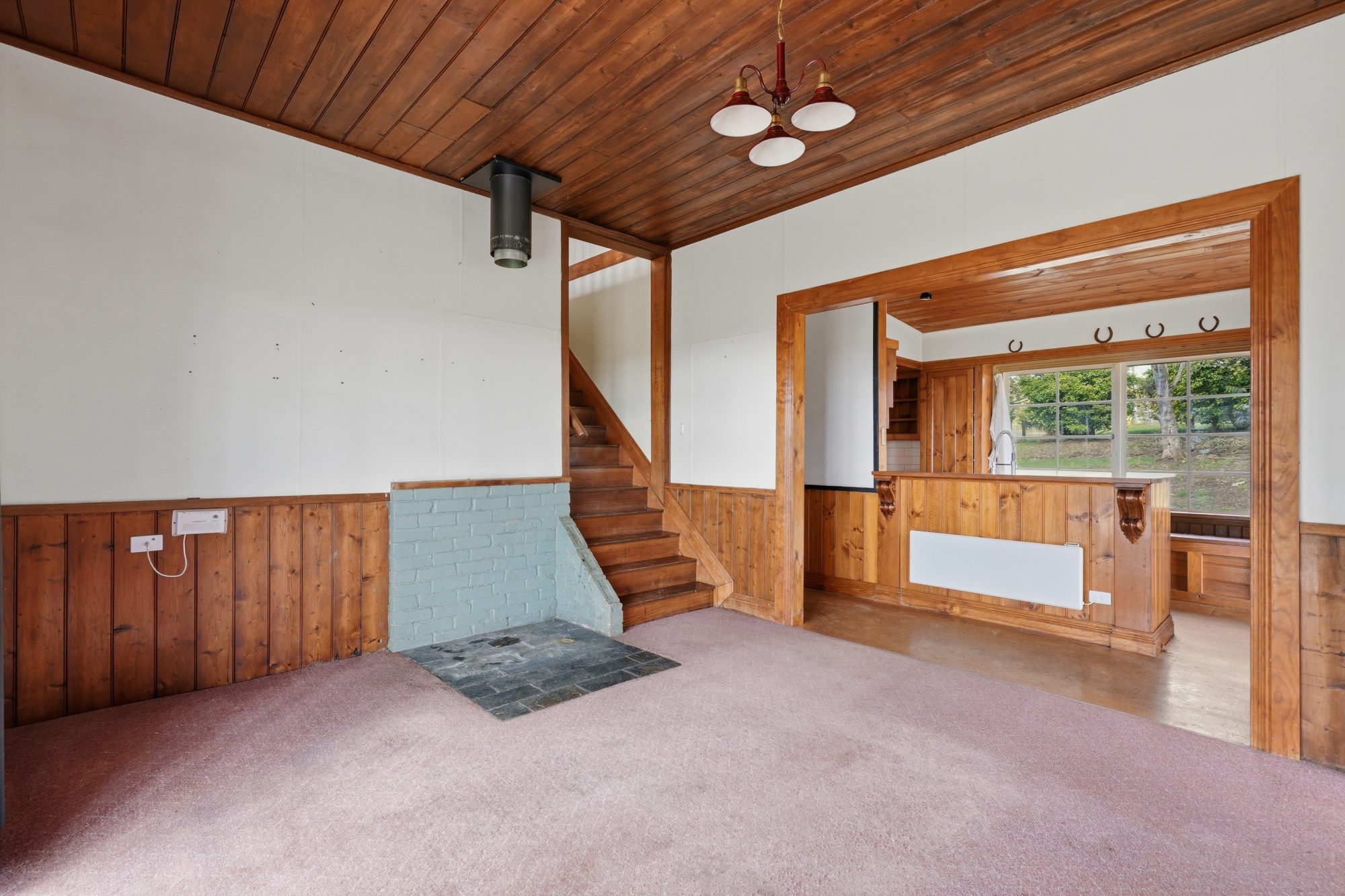 Rich in warmth and personality, the interior includes timber dados, working fireplaces, and a classic country kitchen that reflects the home’s heritage. A sunroom upstairs adds an additional light-filled space to relax and enjoy the surrounding rural outlook.