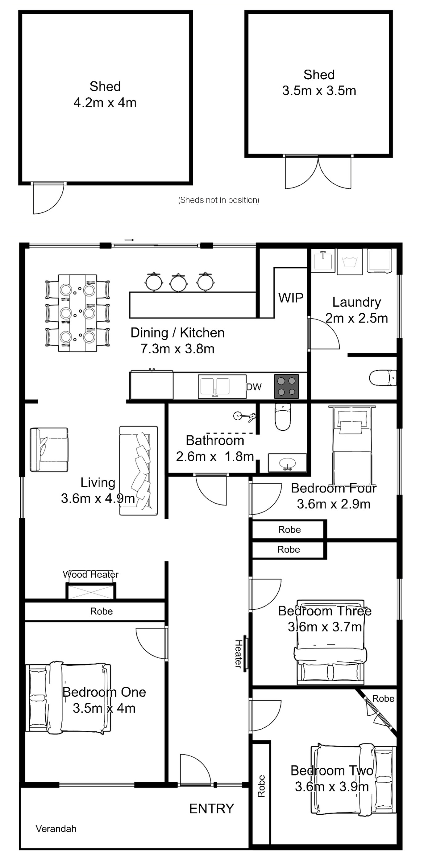 A large separate laundry adds practical space, while outside you’ll find a level, easily maintained backyard, secure sheds and a side driveway for easy off-street parking.