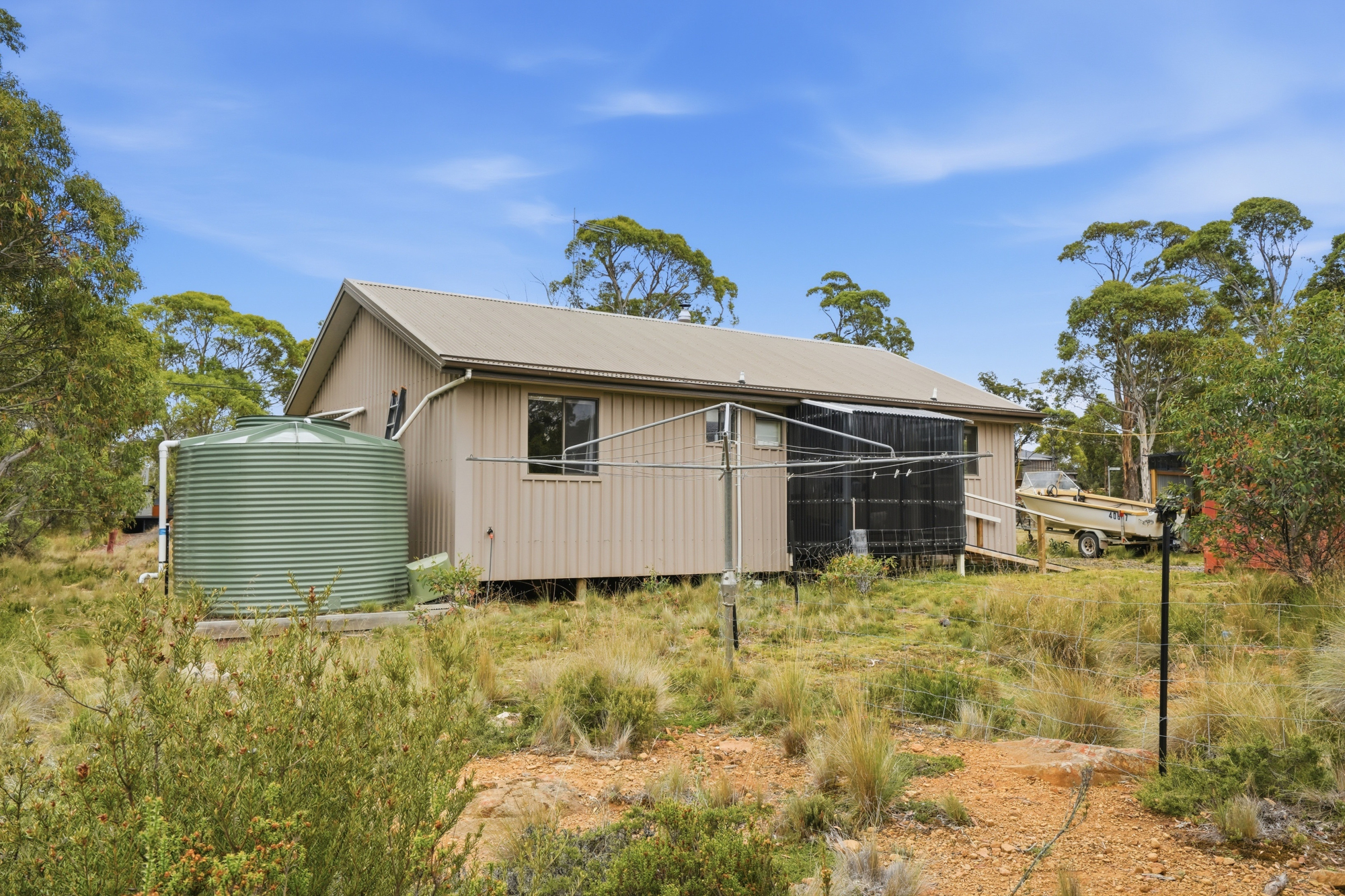 Positioned on a generous flat 1,576m² parcel of land, the property enjoys a quiet setting with an alpine bushland backdrop offering plenty of scope for future development and/or parking-up the boat trailer after a day out on the water.