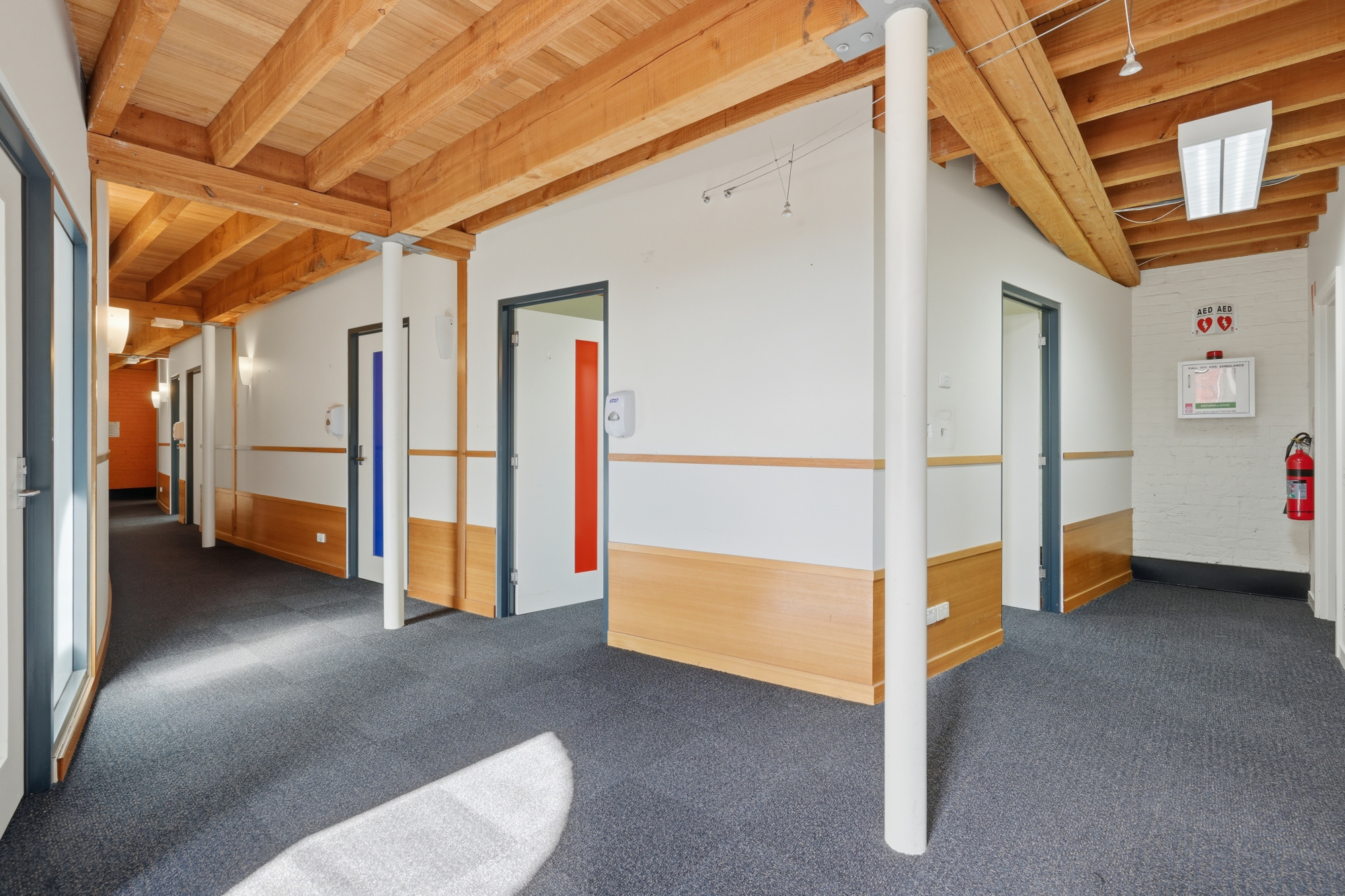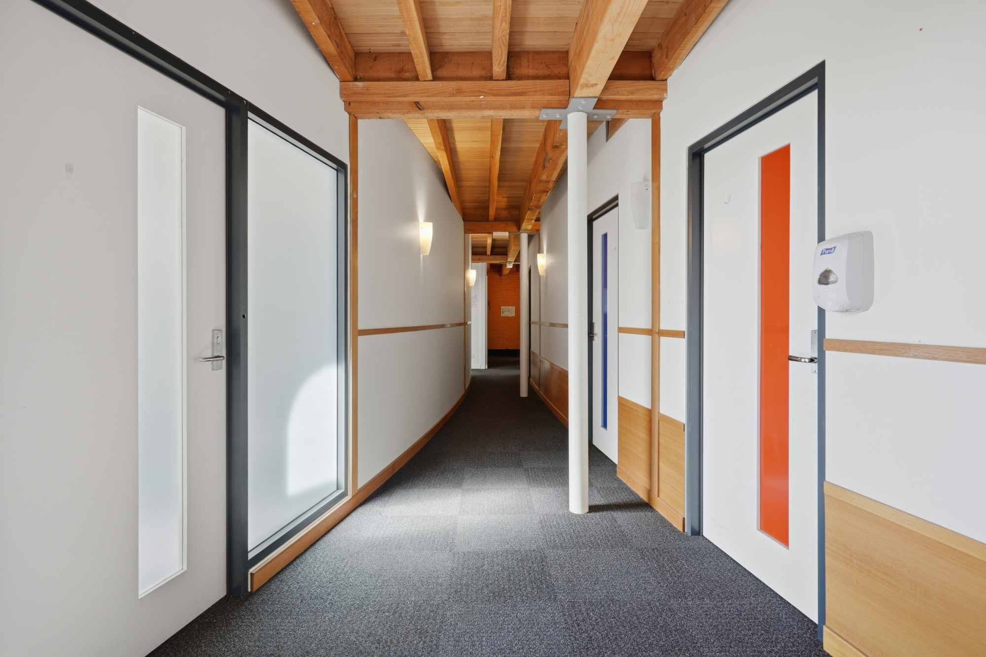 The building provides a generous internal footprint with approximately twelve individual offices or consulting rooms, complemented by shared work areas, wide hallways and welcoming open foyers. Multiple bathroom facilities are available on both levels for staff and clients. Kitchen facilities are also available on both floors.