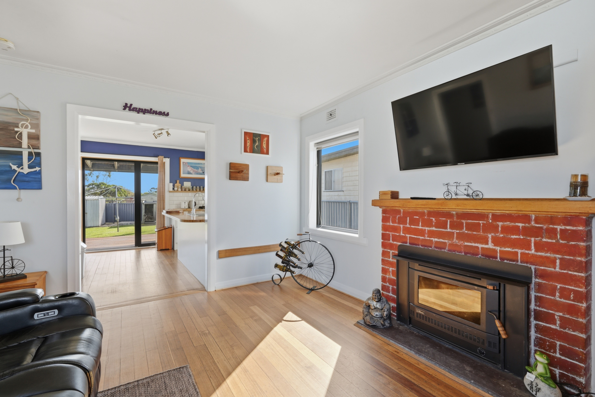 The lounge exudes warmth and charm, with polished timber floors providing both style and substance. No Tasmanian property is complete without serious weather proofing; this home delivers with double-glazed PVC windows, underfloor insulation, solar panels, and heat pump hot water. Both gas cooking and wood heating provide versatile options for year-round versatility.