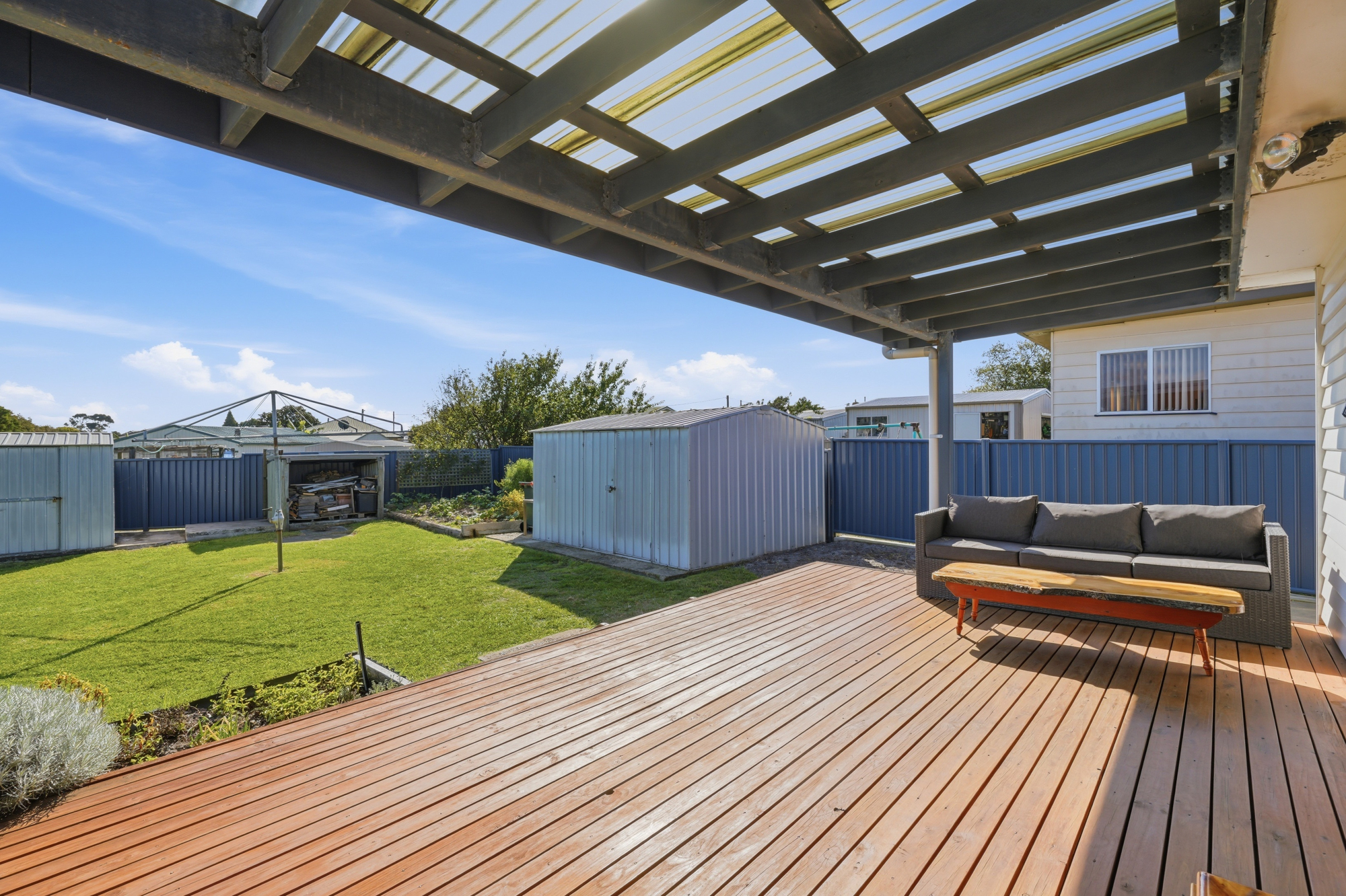 Enjoy two timber decks, with one also off the main bedroom, easy-care gardens with room for a veggie patch, and secure fencing – ideal for families or green thumbs. A powered double garage with dual roller doors completes the package.